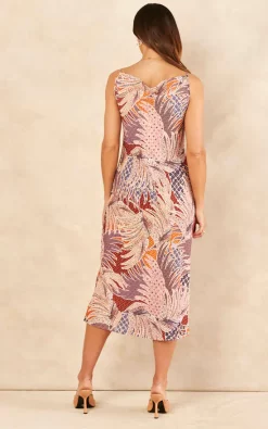 Product Code: LINCOLN COWL NECK SUMMER SLIP MIDI DRESS IN PINK LEAF PATCHWORK PRINT