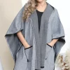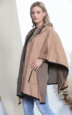 This smart cape is a must have in your winter wardrobe. With a stylish stripe edge for a minimalist but eye-catching design. This cape goes well with a range of styles and fits comfortably over your outfit.