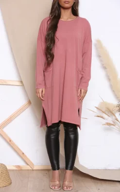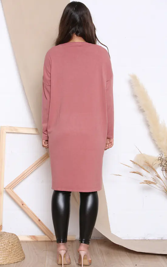 Comfortable fit jumper dress with long sleeves and two front pockets. This dress is perfect for work or relaxing in, or add a belt and heels for a warm evening outfit.
