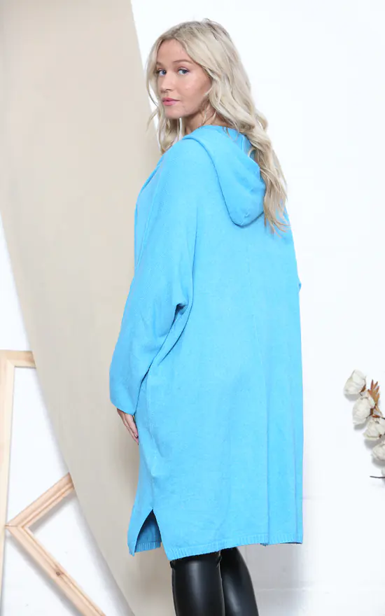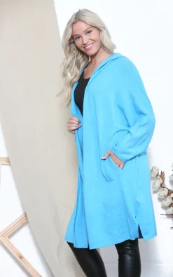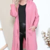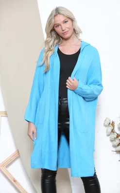 This beautiful cardigan has long sleeves and a long body for a relaxed and warm fit. Comfortable fabric make this cardigan perfect for relaxing or wearing to casual events. Large hood and front pockets make this a must have in your winter wardrobe.