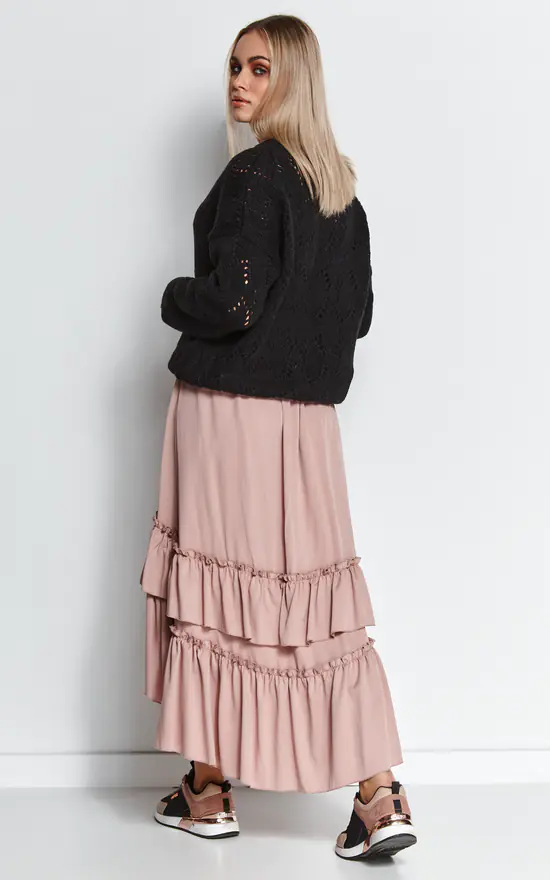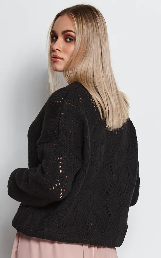 Romantic and extremely feminine women’s jumper with openwork weave is complemented by elegant gold buttons. This is the perfect jumper model for every woman with a romantic soul. The heart neckline perfectly emphasizes the collarbones and optically extends the neck. The jumper has a loose cut, which ensures freedom of movement when worn. It is very soft and pleasant to the touch. It will look great with many different stylizations, including both casual and business looks. Every woman will find the perfect model for herself, because this jumper comes in many colours.