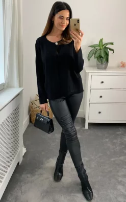 This cute, short cardigan is knitted in a fine rib design with a crew neckline and a large jewelled top button which completes the look and adds some subtle sparkle to this piece. Dress this up over a dress or pair with a maxi skirt or for a more casual look team with skinny jeans.