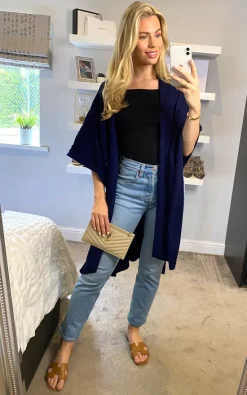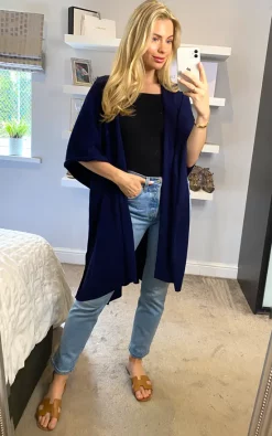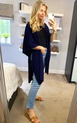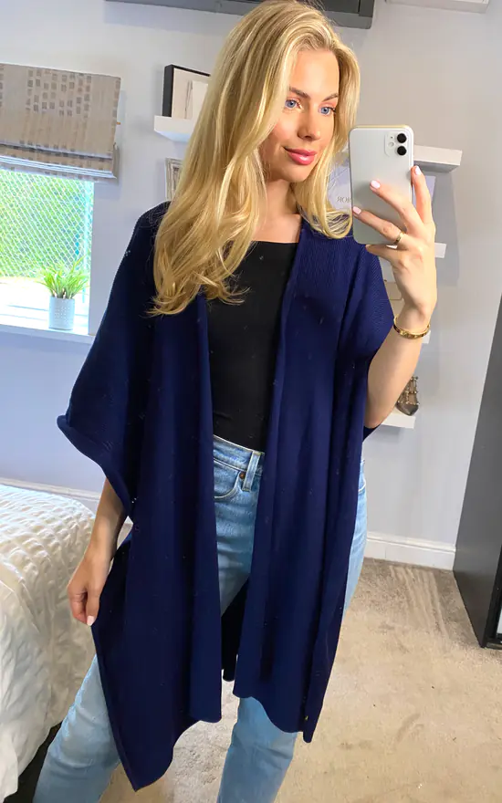 This cover-up cardigan/wrap will be definitely be your greatest companion and keep you cosy for days and nights alfresco dining. With a tie waist belt detail and gorgeous wide sleeves it creates the perfect silhouette. Alternatively wear loose and unfastened, gracefully draping over your shoulders. Crafted in a fine rib knit and a quirky alternative to a jacket.