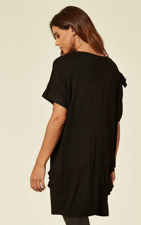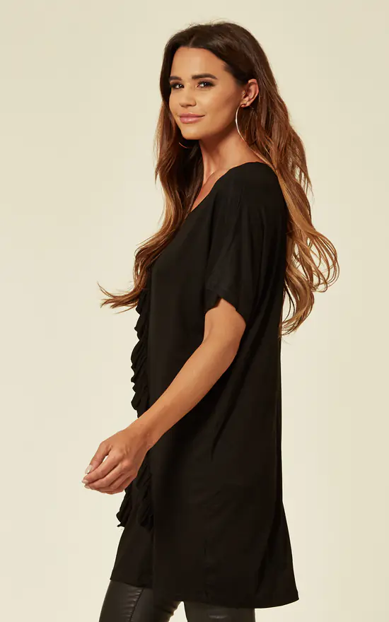 Simple, yet stylish and effective! Look amazing this season in this long line ruffle detail Black T-Shirt!