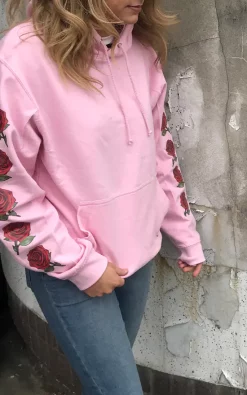 This hooded jersey parker features a stunning gold coloured embellished ‘Hamsa Hand’ slogan to the back of the jacket. Perfect for slipping on at the weekend, casual days or for cosy days at home. Additionally it can glamorize your gym wear wardrobe. Zip fastening and with drawstring detail at the top and the bottom of the jacket too.