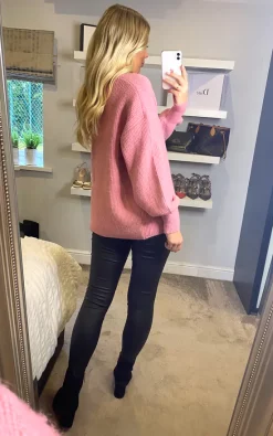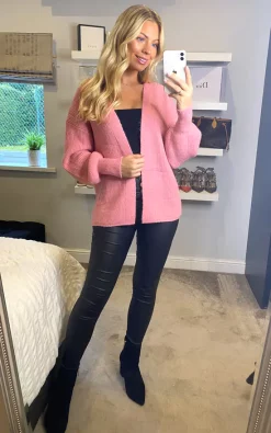 A classic companion for the colder months, this relaxed pink knitted cardigan is super soft and perfect paired with patterns. Injects a soft feminine feel to any outfit. Features a slightly oversized sleeve and a tapered hem.