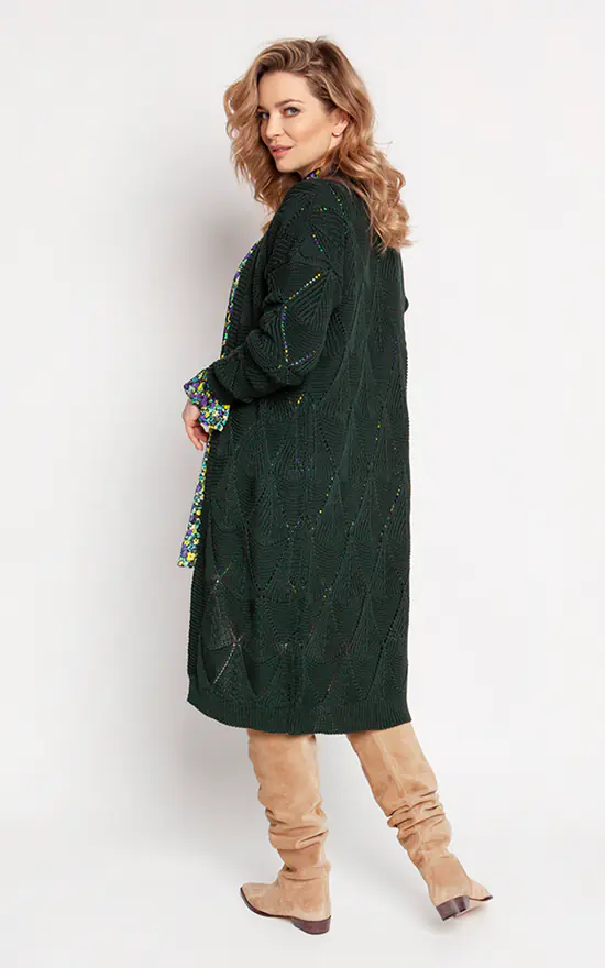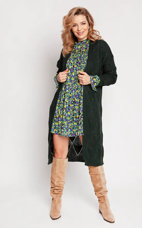 A knitted, lightweight coat, perfect for spring and summer styling. It will be irreplaceable on cool mornings and evenings. Made of luxurious, rich yarn, light and soft to the touch. Very universal.