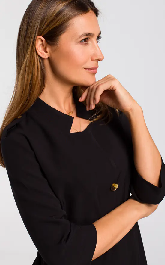 elements – epaulettes and amber-colored buttons. In the front the dress is press stud fastened