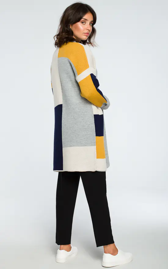 This unique open front, multicolor cardigan is a versatile piece which will take you from workplace to a day out depending on what you choose to wear with it.