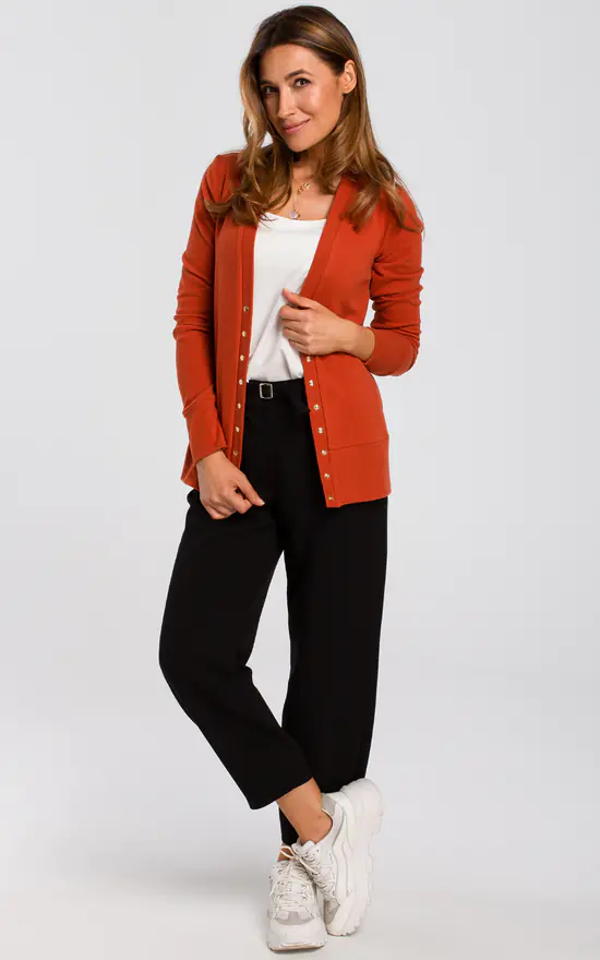 Trendy and practical – this lovely soft cotton cardigan with tight sleeves and a deep V-neck is
