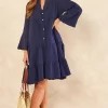 Simplicity with a twist – thatβs what this dress is. Relaxed fit design with side pockets and a bateau neck finished with a floral print in the center.