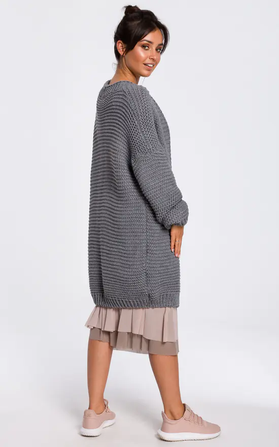 A modern look is guaranteed with this rounded hem oversized cardigan made from thick rice knit.
