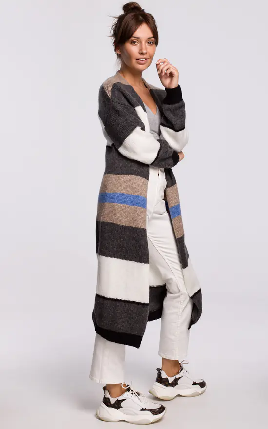You will love the unique stripe pattern of this relaxed longline cardigan.