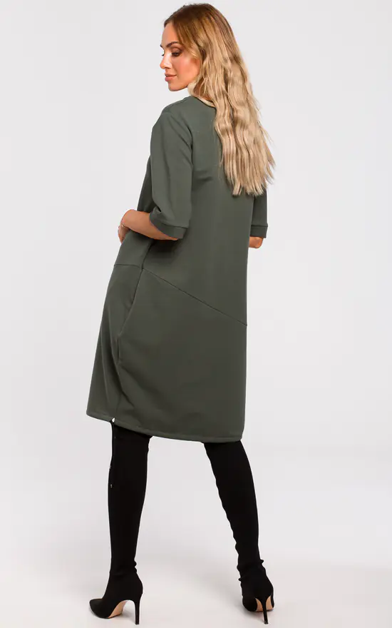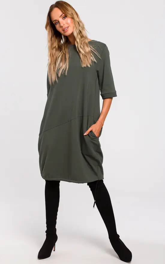 – Pullover dress with fitted bodice and little oversized bottom with side in-seam pockets