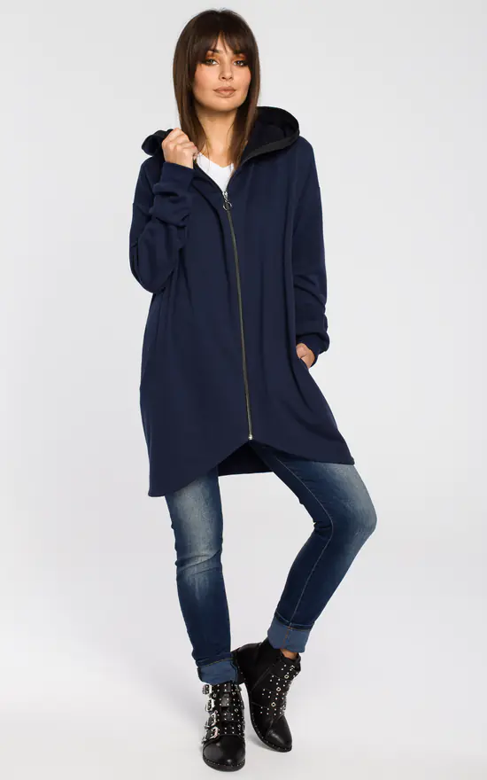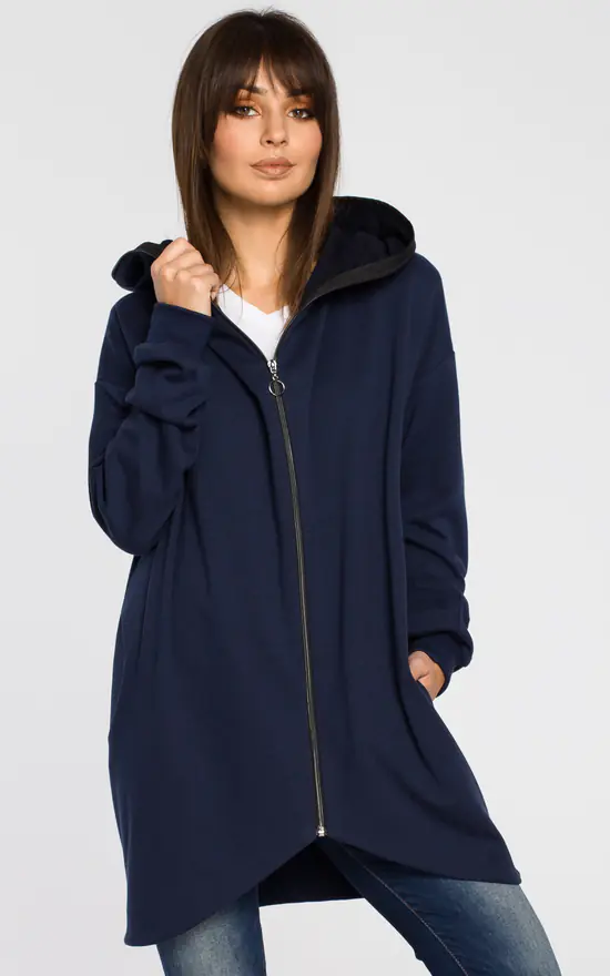Whenever you need to feel warm and cosy this oversized, zipped hoodie will be a perfect choice. Large hood, side pockets, long sleeves with ribbed trim finishing. All this in soft, two-layer fabric with a little colour contrast.