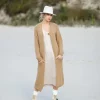 – Long hooded cardigan with pockets in the front