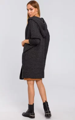 This thick seed knit cardigan features a large hood and long sleeves. Wrap up in it whenever you want to feel warm and cosy.