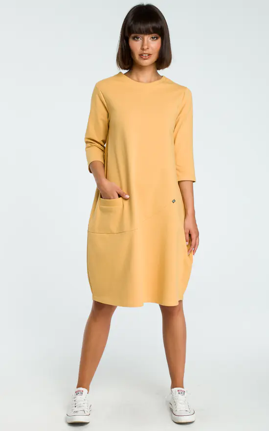 If you are looking for a comfortable and trendy piece for every day either at home or casual outings this oversized dress with a decorative front pocket is what you need.