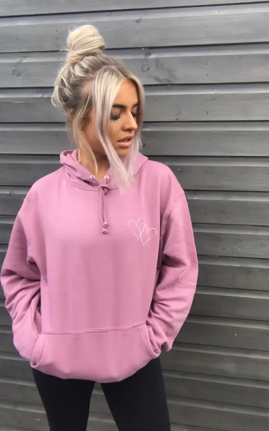 Dusky Pink coloured original hoodie – Featuring a linked heart design on the LHS of hoodie