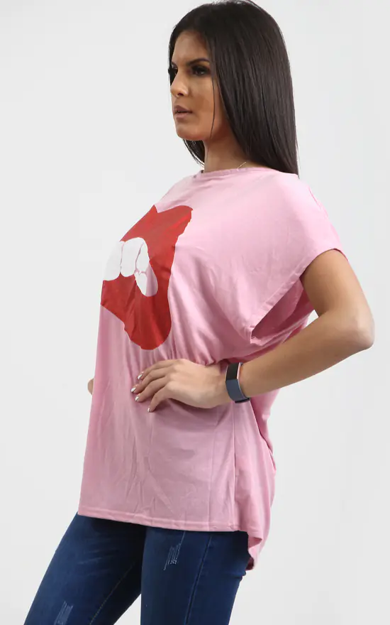 Make your top POP this season in the Graphic Print Lips Oversize Baby Pink Batwing Tshirt. Featuring a vibrant graphic print in a loose fit silhouette. Team with skinny jeans and box fresh kicks