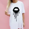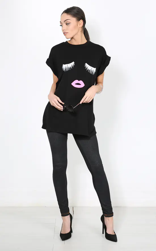 Lillie Lashes Graphic Print Oversized Tshirt featuring a pretty pout graphic print, roll sleeves and baggy fit. Team with skinny jeans and heels for a night out with the gals!