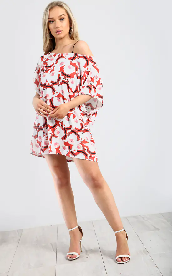 Eliza Christmas Batwing Top In Santa Beard Black! Featuring the ho-ho-holidays this Christmas season in our Oversized Batwing Top In Santa Beard Black T shirt Print.