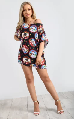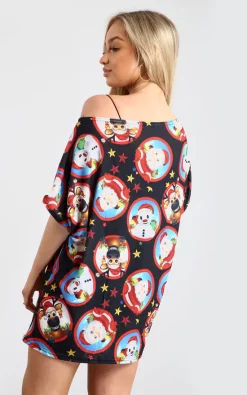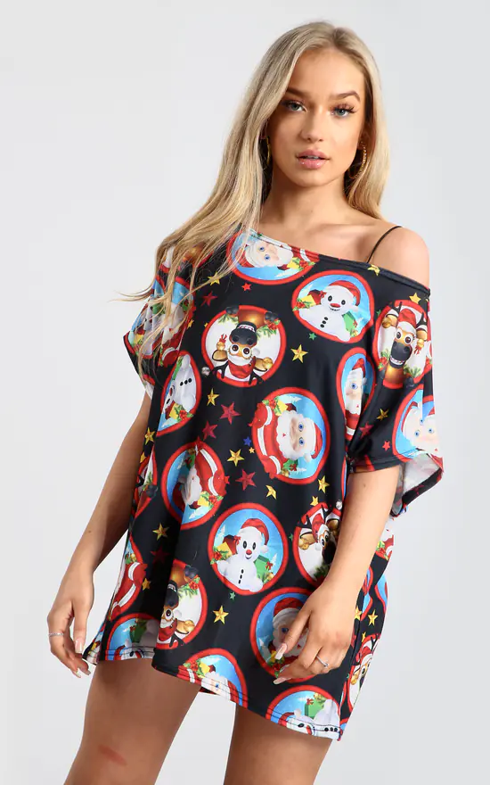 Eliza Christmas Batwing Top In Santa Bubbles ! Featuring the ho-ho-holidays this Christmas season in our Oversized Batwing Top In Santa Bubbles T shirt Print.