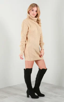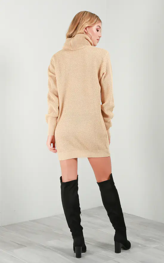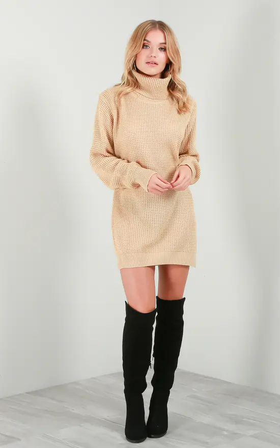 Look knit HOT this season in this Long Sleeve Roll Neck Oversize Knitted Dress in Stone! Featuring a high neck, long sleeves and loose fit chunky knit, you’ll be creating a seriously envy-worthy look while keeping it cosy!