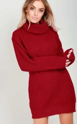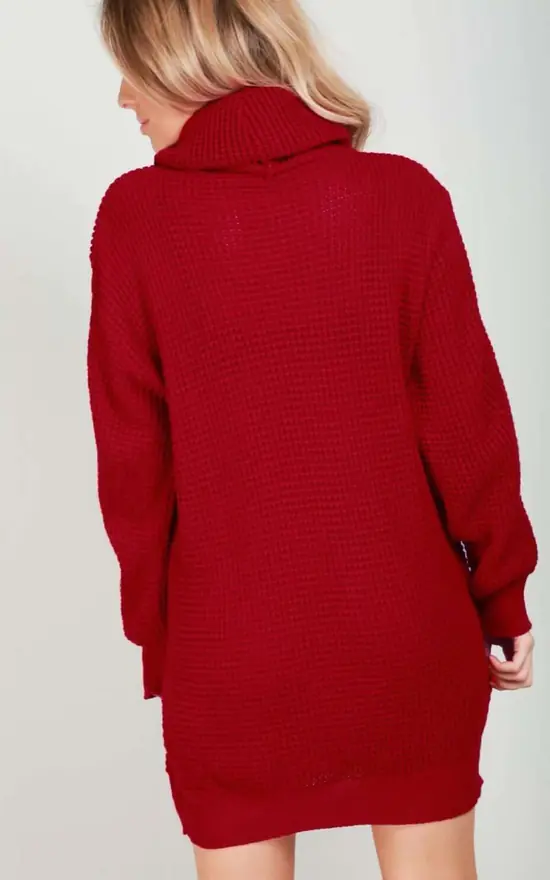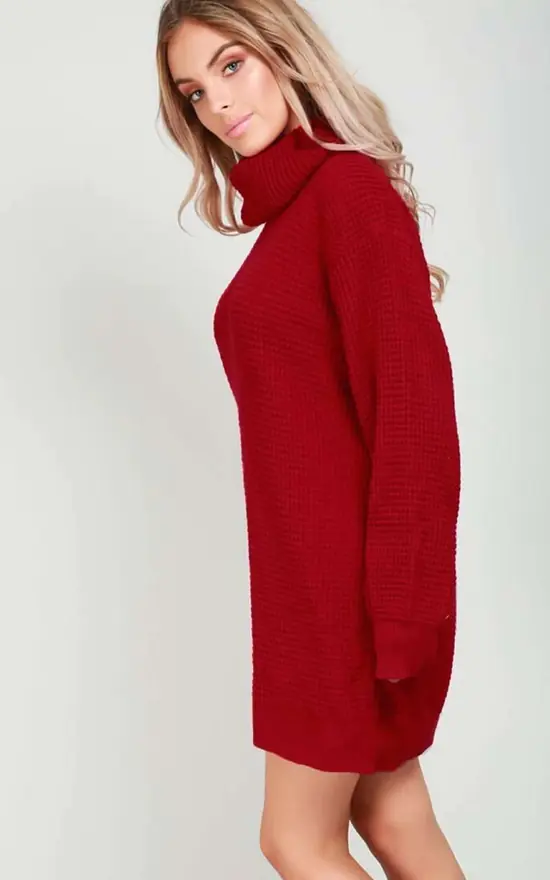 Look knit HOT this season in this dark red jumper dress! Featuring a high neck, long sleeves and loose fit chunky knit, you’ll be creating a seriously envy-worthy look while keeping it cosy!