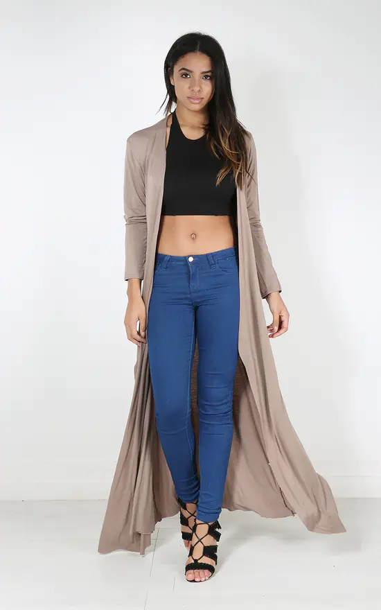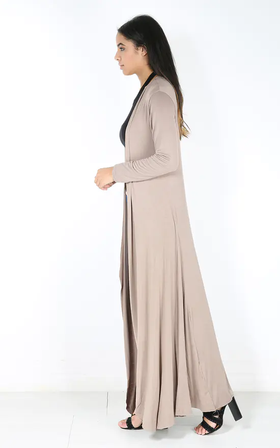 Niamh Open Front Waterfall Cardigan In Mocha ! Take your look to next level this season with our stylish maxi jacket. Featuring long sleeves and floaty hem, this cardigan looks great when worn over a casual daytime outfit!