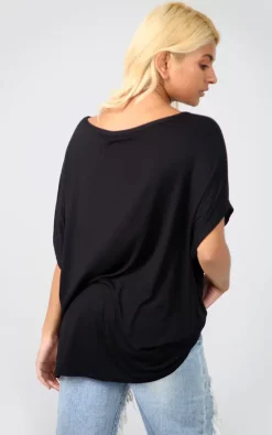 Girl, look fierce with minimum effort in this Black Basic Oversized Bardot Jersey Tshirt. Team with leggings, ankle boots and bomber jacket to create the ultimate combo!