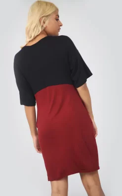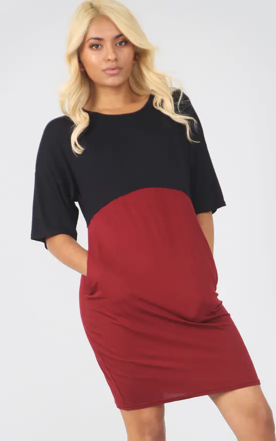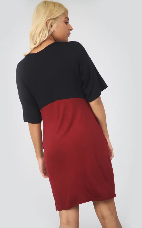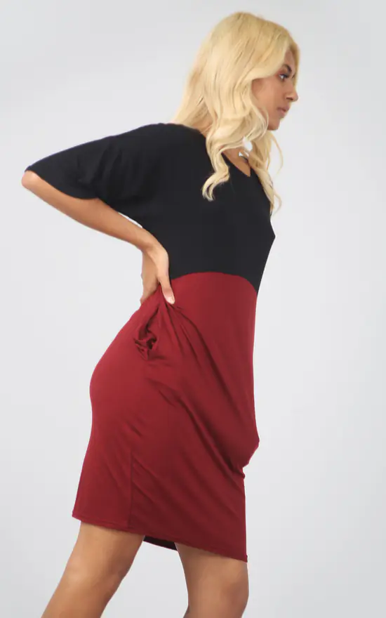 Product Code: 7470-CONTRASTPOCKETSDRESS BLK-WINE/