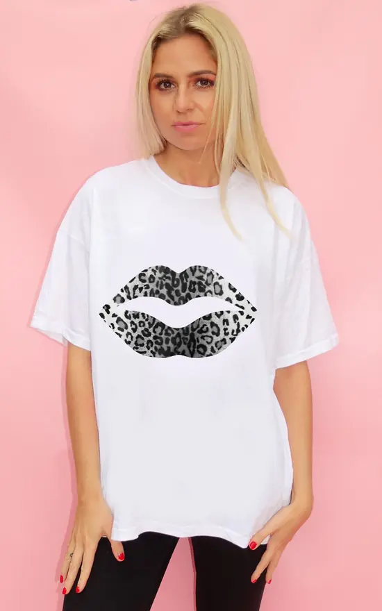 Feel hot this summer in our oversized customised t-shirt with black and white leopard lip graphic. This comfy tee is a unique handmade item.