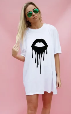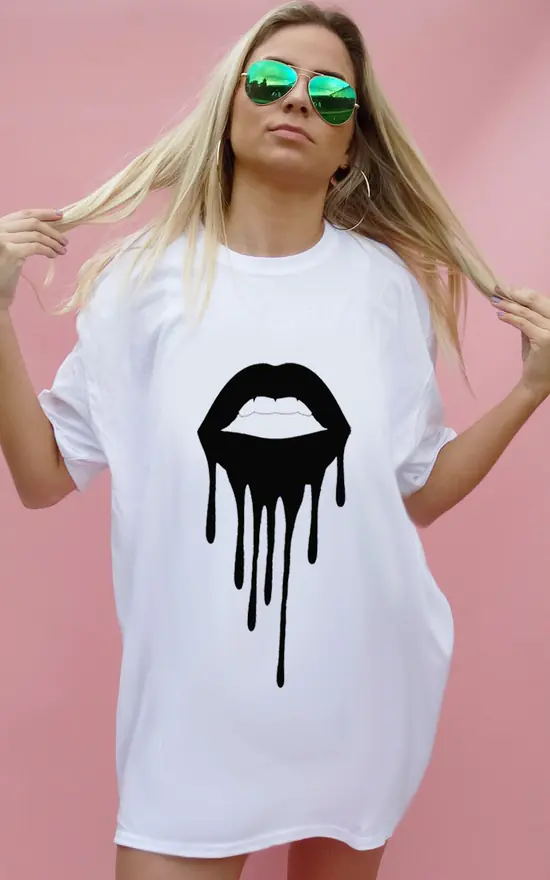 Feel hot this summer in our oversize customised black drip lip t-shirt. This comfy tee is a unique handmade item.