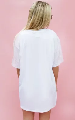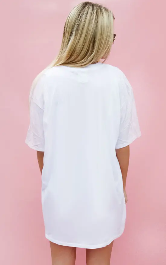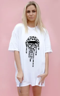 Leopard Print Drip Lip Outline Tshirt Dress In White. A short sleeve oversize polyester.