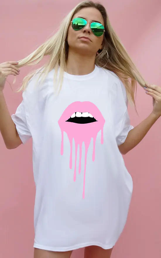 Feel hot this summer in our oversize customised Pink Drip Lip TEE. This comfy tee is a unique handmade item.