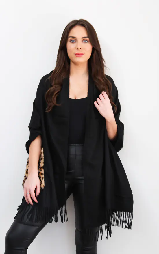 Budget ⌛ Styled By Grazia Black Leopard Print Pocket Poncho With Fringe Trim 🥰