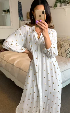 The Breathless trance stroll dress from the SS21 line-up is decorated with burst of sequins. This long sleeve shirt style is worked to a loose midi silhouette thatβs can be worn with relaxed styling or belted for a more refined look.