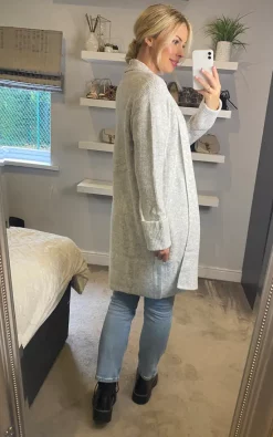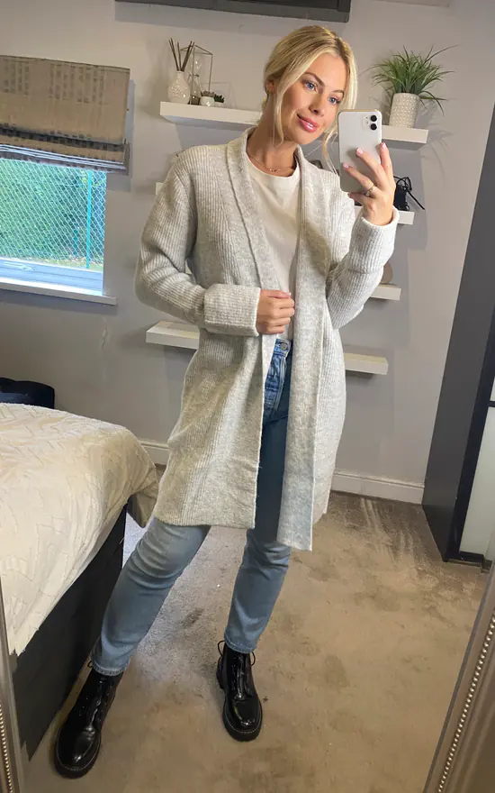 Make cosy cool in the Yumi Grey Knitted Long Cardigan. The edge to edge design will go over you winter wardrobe with ease, and is the perfect way to keep the chill off. All wrapped up in the softest knit, wear with a roll neck, denim skirt and knee high boots for an easy everyday fit. Size reference: S /M = 8-12, M/L = 12/16